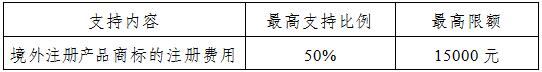 1.企业在境外进行产品商标注册费予以支持,不包括咨询、代理等费用。