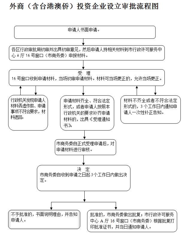第三步:市商务委对申报材料进行审核,在法定期限内作出批准或不予批准的决定;批准的,颁发《外商投资企业批准证书》(《台港澳侨投资企业批准证书》)。
